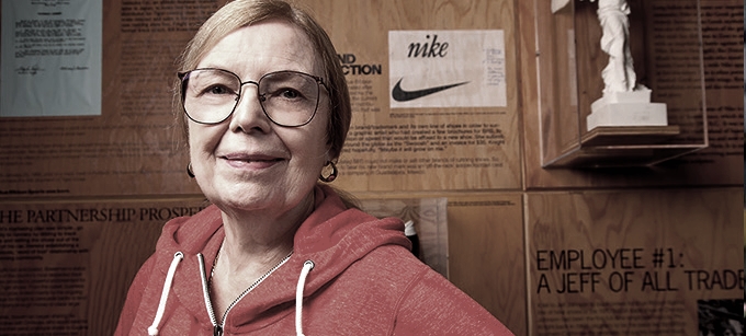 졸업 후 전시 인테리어 분야에서 일하던 제자는 어느 날 신발 디자인공모전 참가 초대장을 받게 되는데 그것은 스승이 운영하는 신발 회사에서 보내온 것이었다. 신발 디자이너로는 초보자였던 그는 독창적인 피티로 입사 통보까지 받게 되고 초고속으로 승진해 수석 디자이너가 된다. 장래가 촉망되던 장대 높이뛰기 선수였지만 사고로 신발 디자이너로 새로운 삶을 살 게 된 제자의 이름은 팅커 햇필드, 그 길로 이끈 스승이었고 더 나은 신발을 만들려고 신발회사를 창업(필 나이트와 공동창업)했던 교수의 이름은 빌 바우어만, 그가 창업한 신발회사이자, 지금은 세계 스포츠계의 압도적 1위로서 업계를 이끄는 기업이 나이키다.