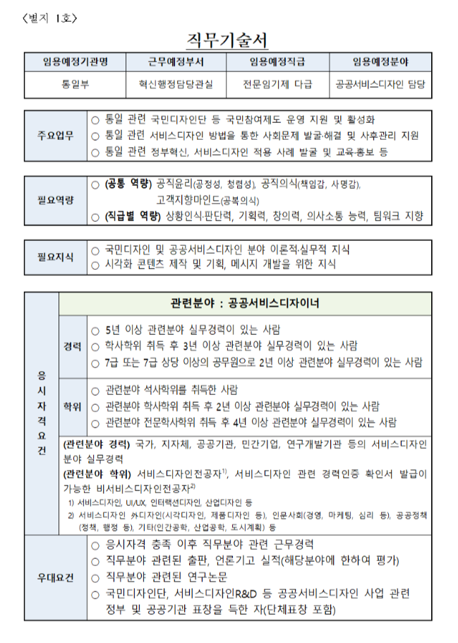 통일부, 공공서비스디자이너 채용 공고