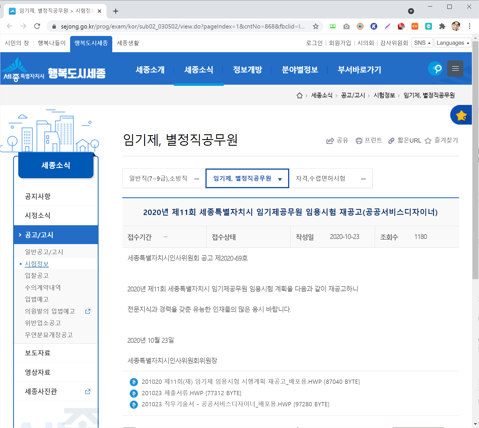 임기제, 별정직공무원 > 시험정보 > 공고/고시 > 세종소식 > 행복도시세종