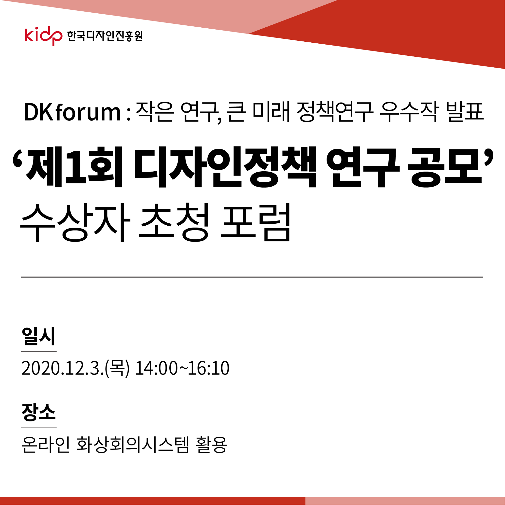작은 연구, 큰 미래. 디자인정책연구 우수작 발표. 12월3일. 14:00. ZOOM - 한국디자인진흥원