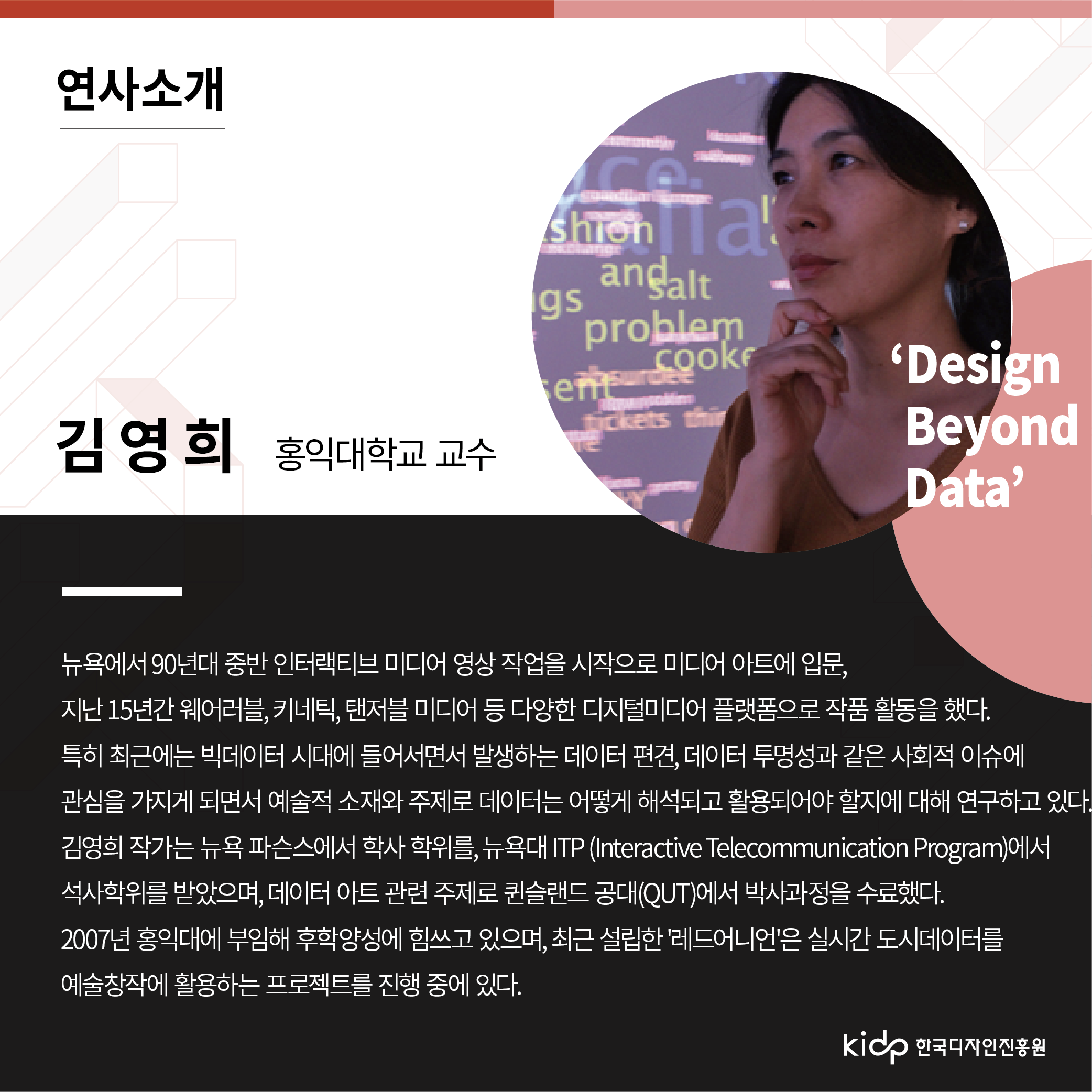 데이터의 본질적인 속성과 현 사회 속의 문제를 드러나게 할 수 있는 속성을 통해 데이터가 예술적 소재로써 어떻게 예술적 영감을 줄 수 있는지에 대하여 작품을 통해 이야기합니다.