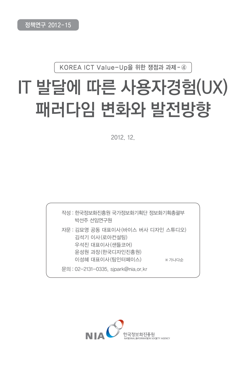 IT 발달에 따른 사용자경험(UX) 패러다임 변화와 발전방향 - 2012. 한국정보화진흥원