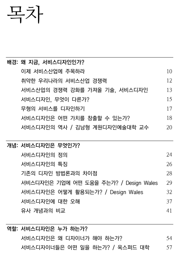 이러한 관점에서 볼 때, 국내 서비스 산업의 취약한 경쟁력을 강화 시킬 방안을 고려함에 있어 우선적으로 디자인 방법론을 검토하는 것은 매우 타당하다. 앞으로는 지금까지 디자인이 수행했던 역할과는 완연히 다른 양상으로 서비스에서의 디자인, 즉 ‘서비스디자인’이