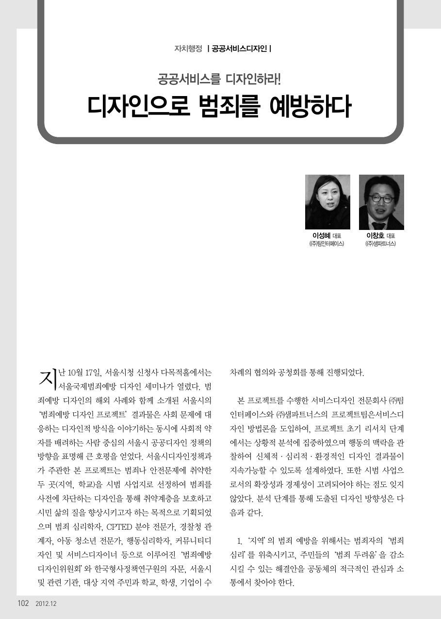 12_1_디자인으로 범죄를 예방하다_이성혜 팀인터페이스 대표 / 이창호 샘파트너스 대표