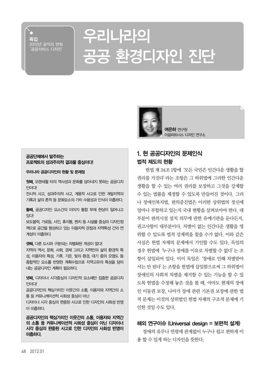 01_4_우리나라의 공공 환경디자인 진단_여은하_이음파트너스 디자인연구소 연구원