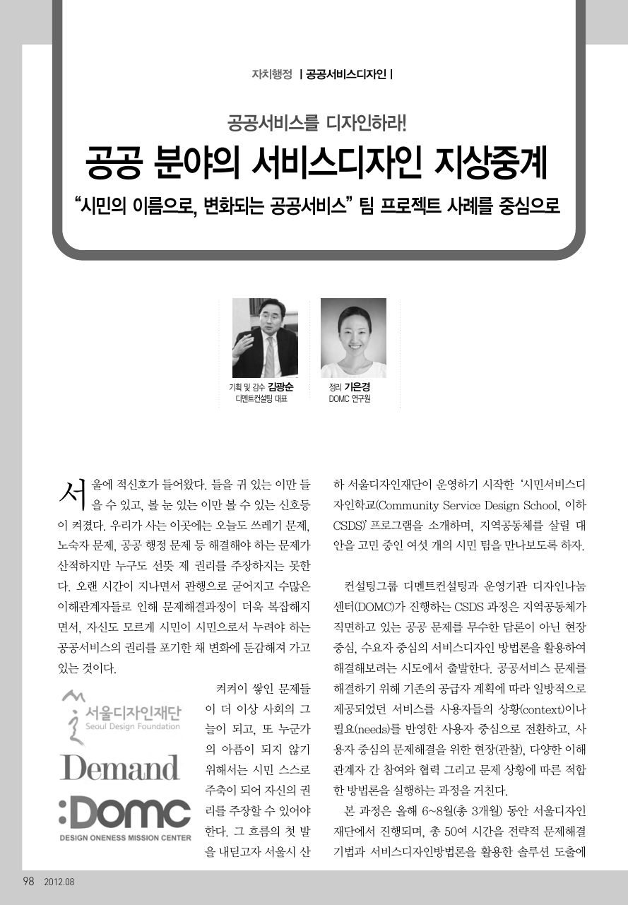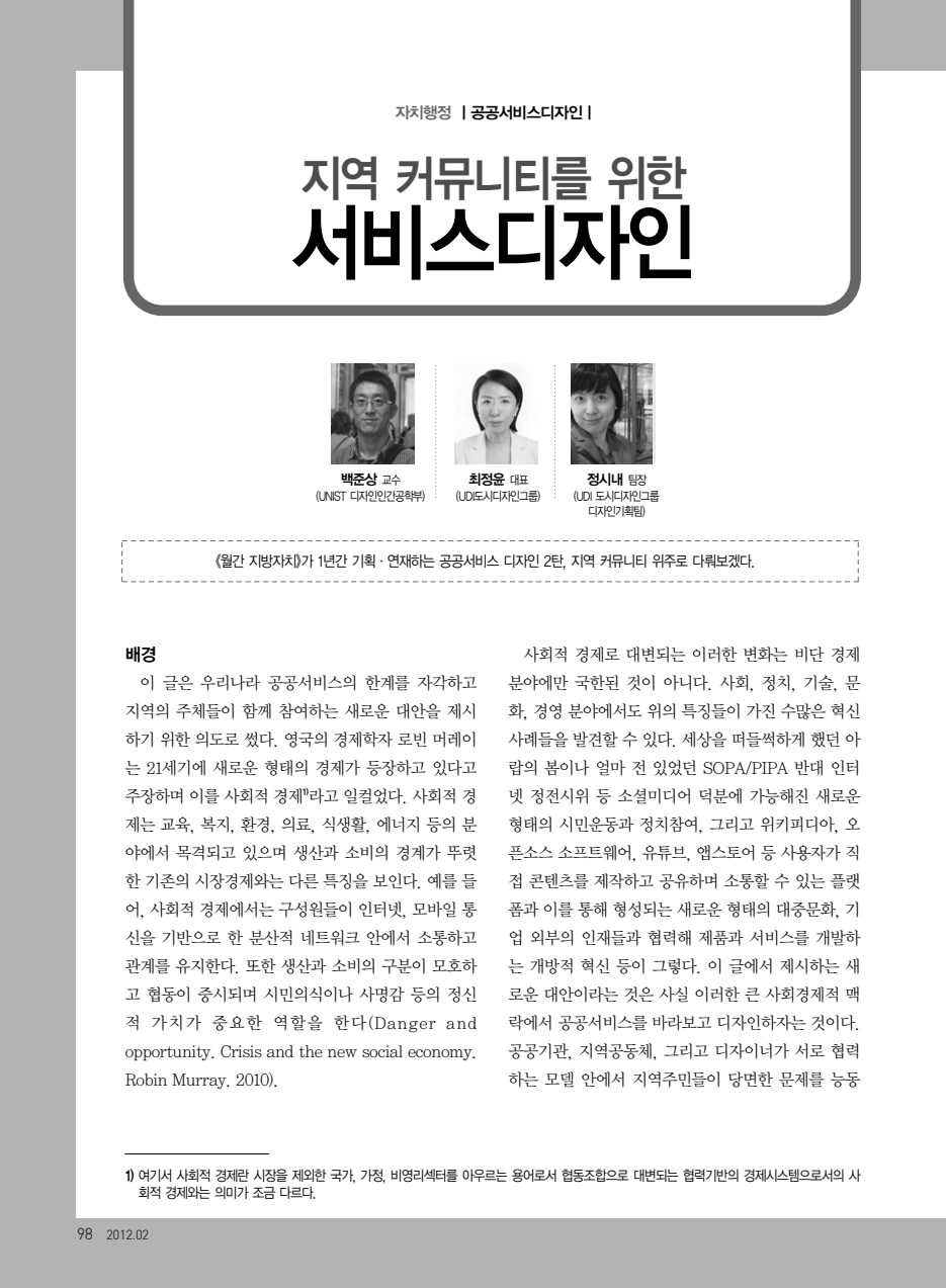01_1_좌담회 : 공공서비스 디자인,2012 혁명을 일으킵니다._허윤연 월간지방자치