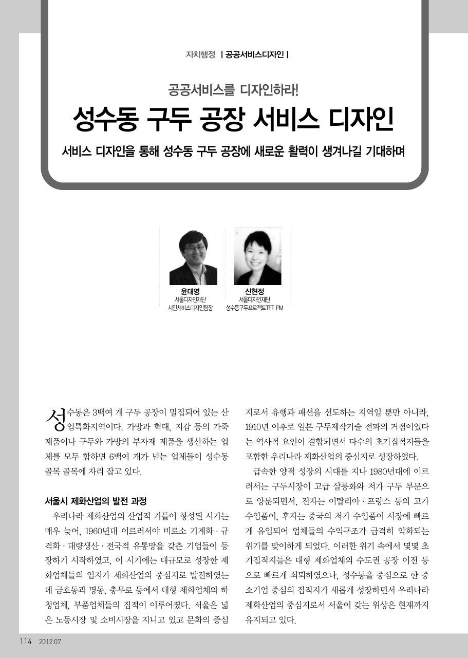 07_1_성수동 구두 공장 서비스디자인_윤대영 서울디자인재단 시민서비스디자인팀장 / 신현정 서울디자인재단 성수동구두프로젝트TFT PM
