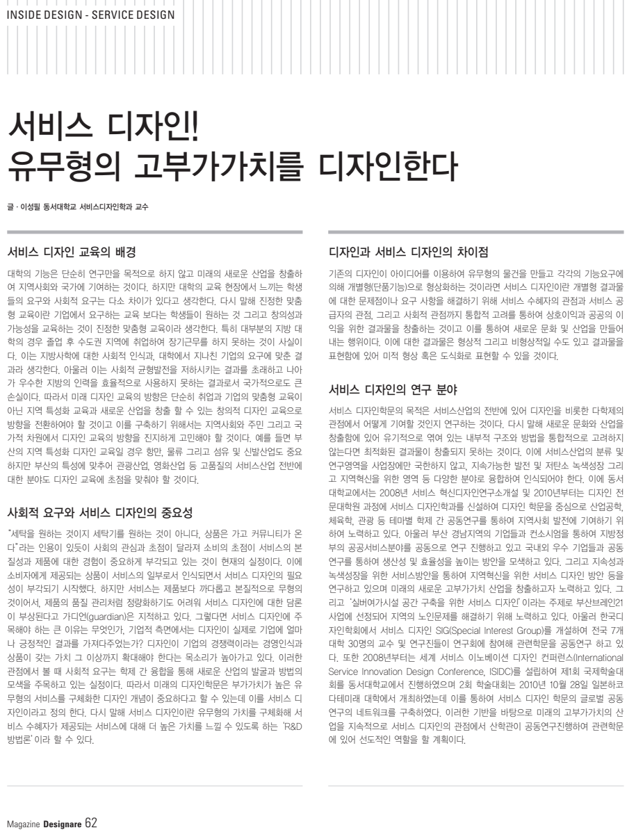 서비스디자인! 유무형의 고부가가치를 디자인한다_이성필 동서대학교 서비스디자인학과 교수
