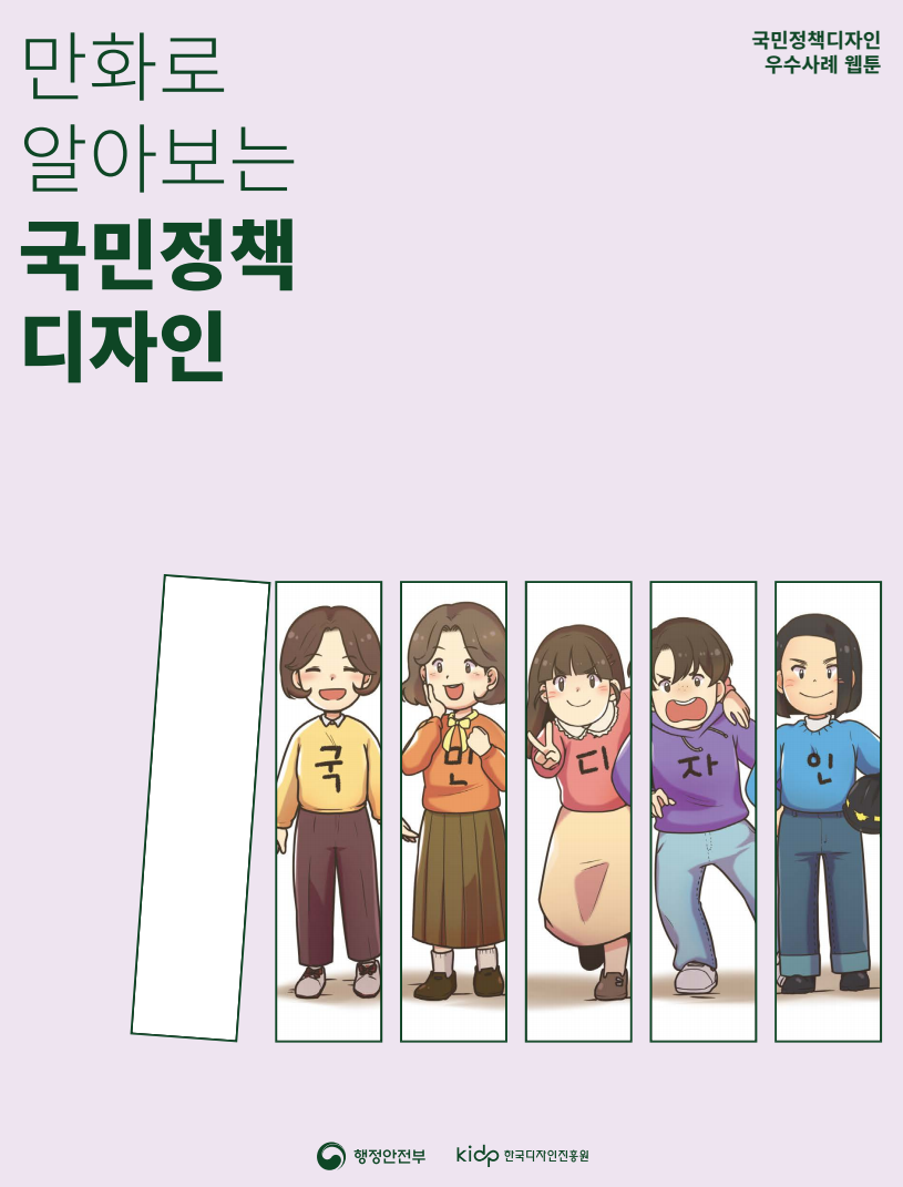ㅁ국민정책디자인 우수사례 웹툰 (첨부파일 참조) 국민정책디자인 우수사례 웹툰은 국민정책디자인의 대표 우수사례에 대해 설명하고 있습니다. 국민정책디자인 우수사례 웹툰을 통해 국
