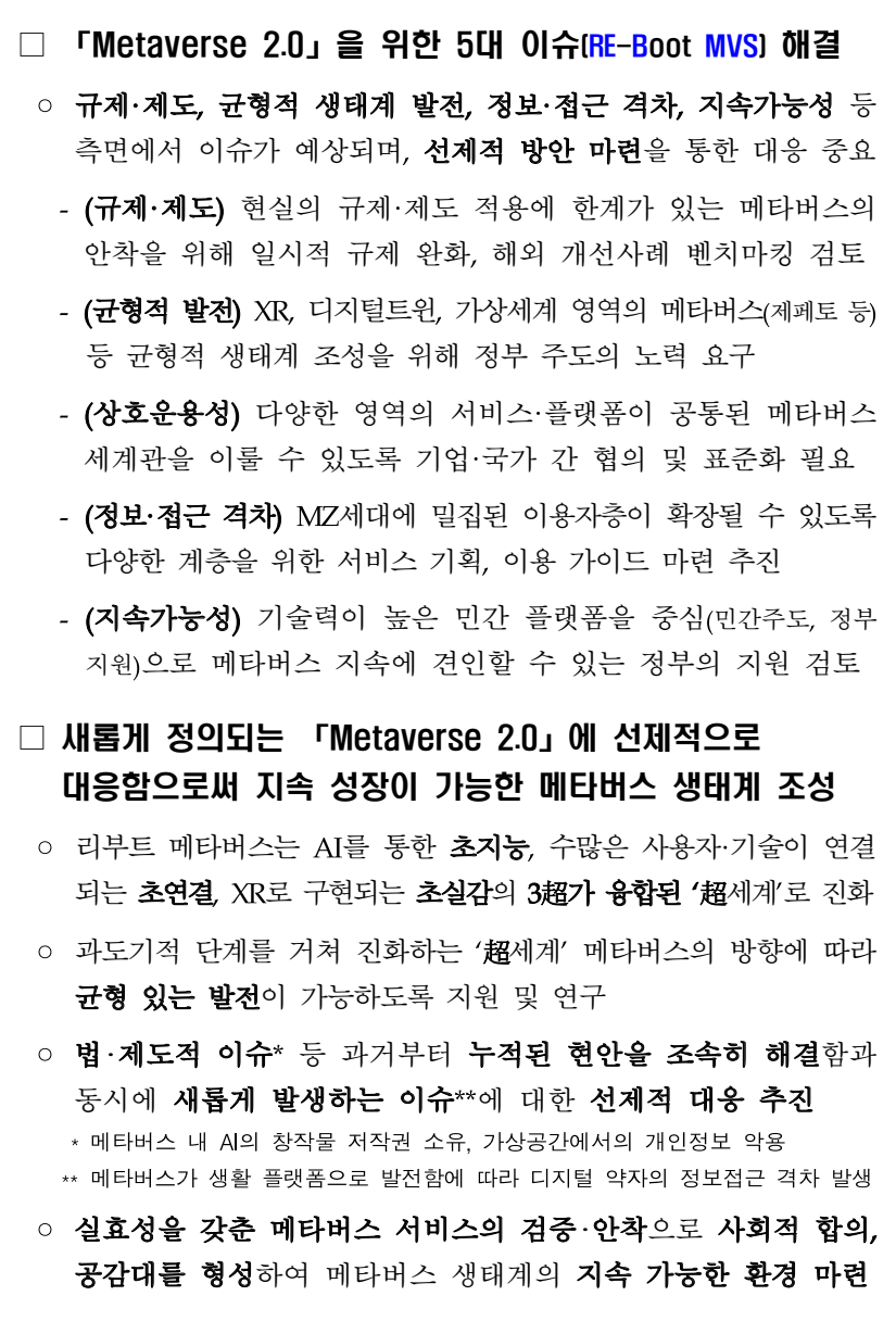 이슈리포트 '리부트 메타버스(Re-Boot MVS), 2.0시대로의 진화'...