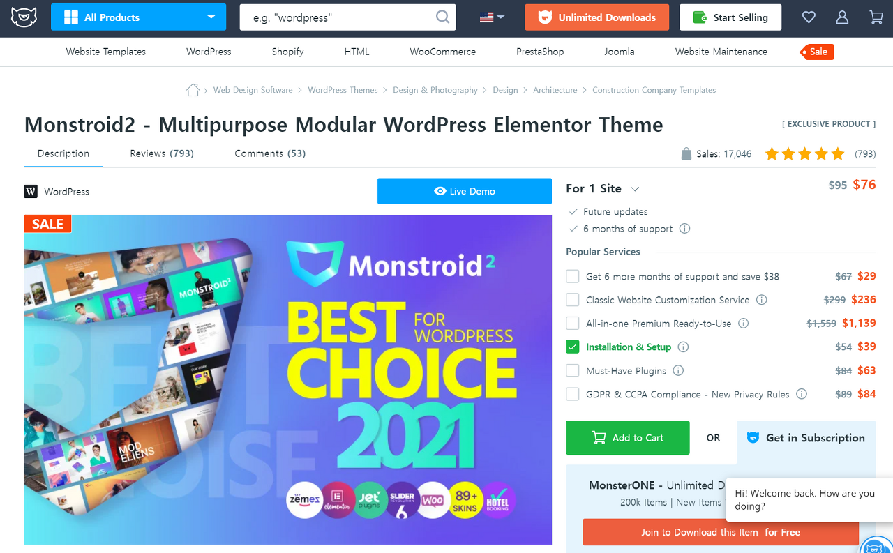 아래 이미지는 TemplateMonster에서 가장 잘 팔리고 있는 웹디자인입니다. 판매건수를 고려할 때 누적 판매액은 약 17억 원 정도로 추정됩니다. 디자인 플랫폼이 가진 가능성을 보여주는 사례라고 할 수 있습니다.
