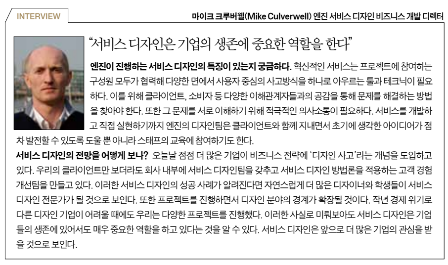 목적 : 월간디자인 2010.10월 서비스디자인 특집 기사 게재시 엔진의 개발사례 소개 및 참고자료로 활용