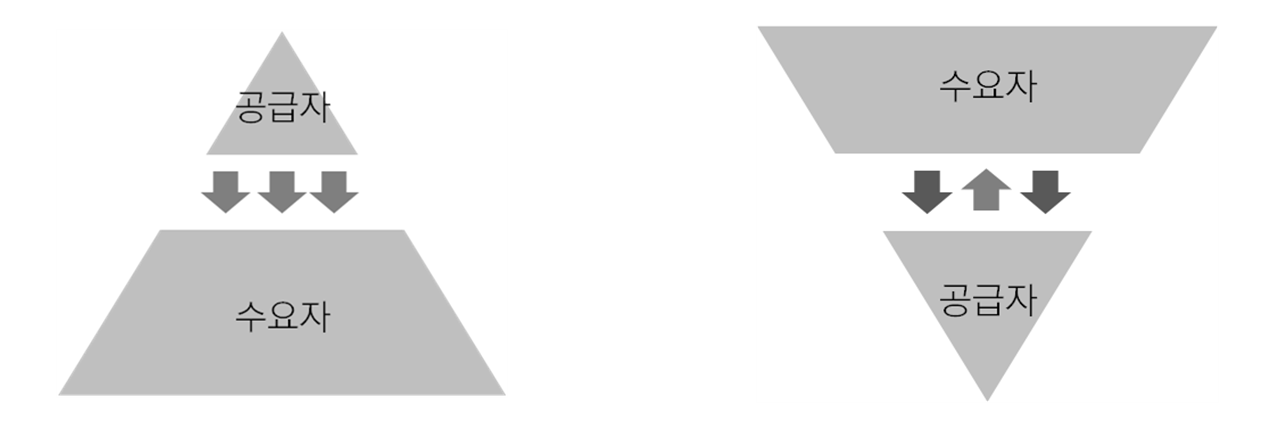 오른쪽 그림 : 변화된 정책 환경. 수요자가 정보우위를 점하며 공급자에서 혁신을 요구하고 있음
