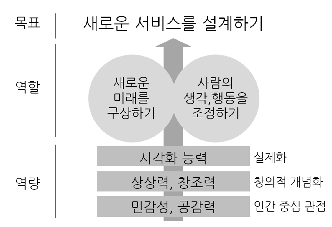 좋은 디자이너는 민감성과 공감력을 바탕으로 사용자의 관점으로 경험의 세계를 다시 살필 수 있다는 점, 상상력과 창조력, 시각화 능력으로 지금까지 없던 새로운 무언가를 만들어내는 역량이 있다. 앞으로 디자이너에게는 새로운 우리의 미래를 구상하고 사람들의 생각과 행동의 변화를 유발할 수 있게 하는 기회가 더 주어지게 될 것이다. 그 정점에 새로운 서비스를 디자인하는 역할이 있다.