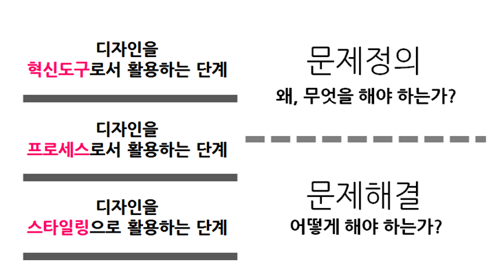 디자인이 추구하는 혁신은 기술이 아니라 인간을 중심에 둔다는 점, 공급자가 아닌 사용자 중심의 관점을 갖는다는 것이 일관된 특징임을 알 수 있다. 그러기 위해서는 경제성, 효율성보다는 인간의 감성적, 심리적, 행동의 변화를 목표로 해야 한다.