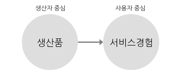 산업이 변환기를 맞고 있다. 생산 중심(제조산업)에서 경험 중심(서비스산업)으로 제조산업에도 이제 수요자에 관한 연구가 필요하다. 지금까지 산업은 생산품(제품, 농산물, 에너지 등)의 생산에 집중해 왔다. 생산성과 효율성 향상을 통해 생산력을 높이는 데 온 힘을 기울여 온 것이다. 이것은 본질적으로 생산자 중심의 관점이다. 사용자는 생산품의 구매에서 만족을 느끼는 단계를 넘어 정서와 심리적 만족을 욕구하고 있다. 사용자는 이미 생산품 자체가 아닌 서비스 경험을 구매하고 있다.