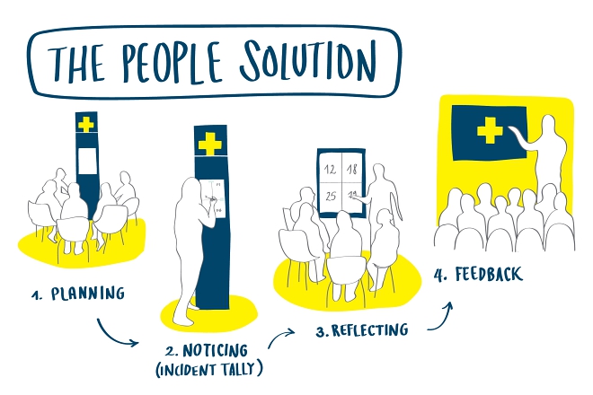 의료진을 위해서는 폭력적 성향을 보이는 환자군에 대한 대응법을 효과적으로 교육하기 위해 리서치 결과를 알기 쉽게 정리한 응급실 안내서를 개발했다. 더불어 응급실 현황 기록판을 만들어 설치하였는데, 의료진은 이 보드에 응급실 현황을 기록하고 그 기록을 토대로 정기적으로 의견을 나누어 더 발전적인 의료 환경을 만들 수 있도록 유도했다.