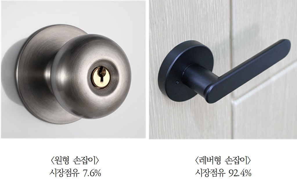 다음 두 개의 손잡이 중 하나는 포용의 개념을 고려하지 않고 만든 손잡이이고 하나는 ‘포용디자인’이 된 손잡이이다. 왼쪽 손잡이는 손바닥으로 잡아 힘을 주어 돌려야만 열 수 있는데 반해 오른쪽의 손잡이는 손아귀에 힘이 없거나 심지어 손이 없는 사람도 열 수 있게 디자인되었다. 현재 왼쪽 유형의 손잡이는 7.6%, 오른쪽은 92.4%의 비율로 팔리고 있다. 이것은 포용성을 추구하는 것이 산업적 성과에 반하지 않는다는, 두 마리 토끼 중 뭔가 하나를 선택해야 하는 문제가 아니라는 증거다. 포용디자인을 잘 구현하면 시장에서 더 경쟁력을 갖게 된다는 것을 알 수 있다.