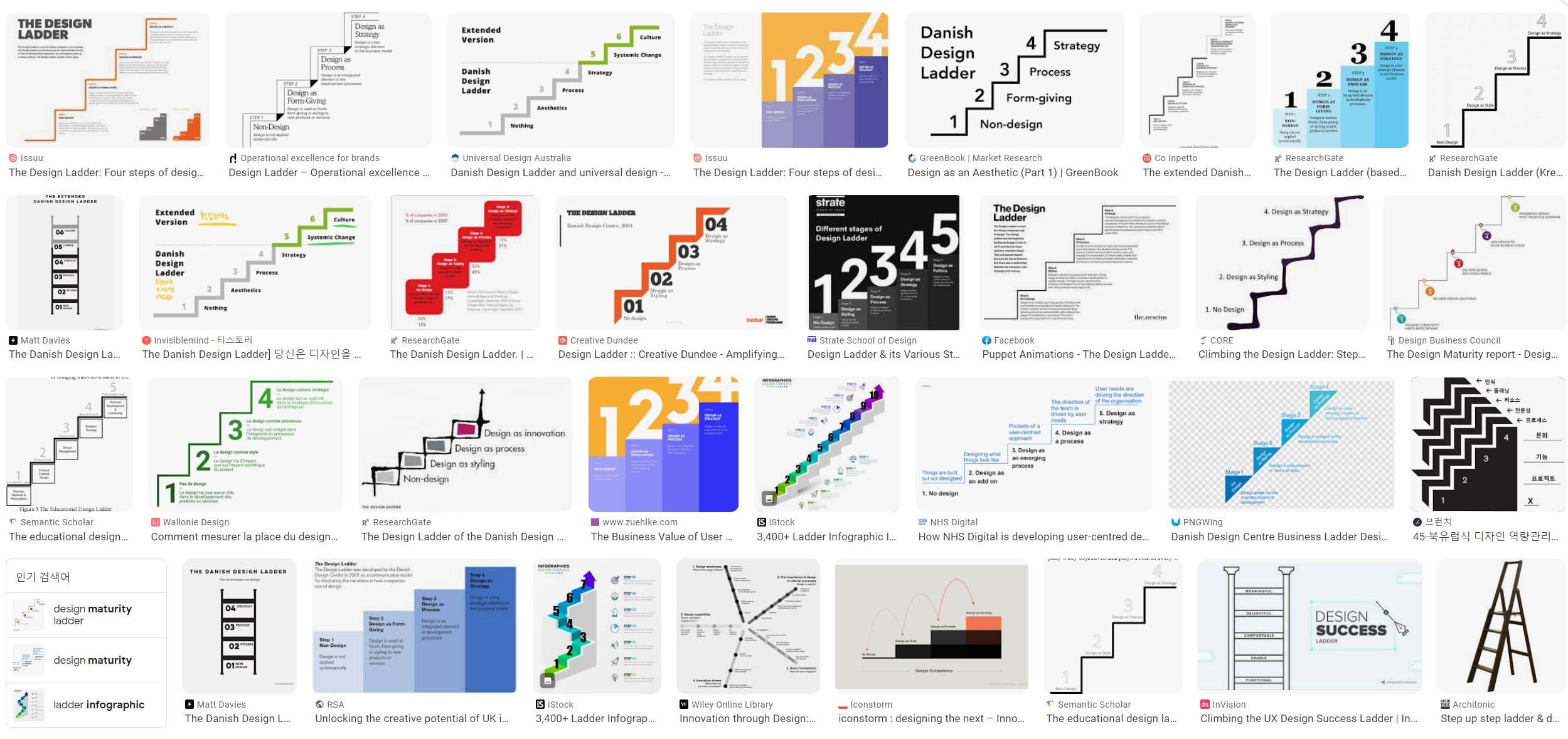 위와 같은 이해에 대해서는 상당 부분의 공감이 있는 것으로 파악된다. "디자인 사다리"(Design Ladder), 디자인의 발전 단계 등의 키워드로 검색을 해보면 이런 류의 내용을 많이 찾아볼 수가 있다.