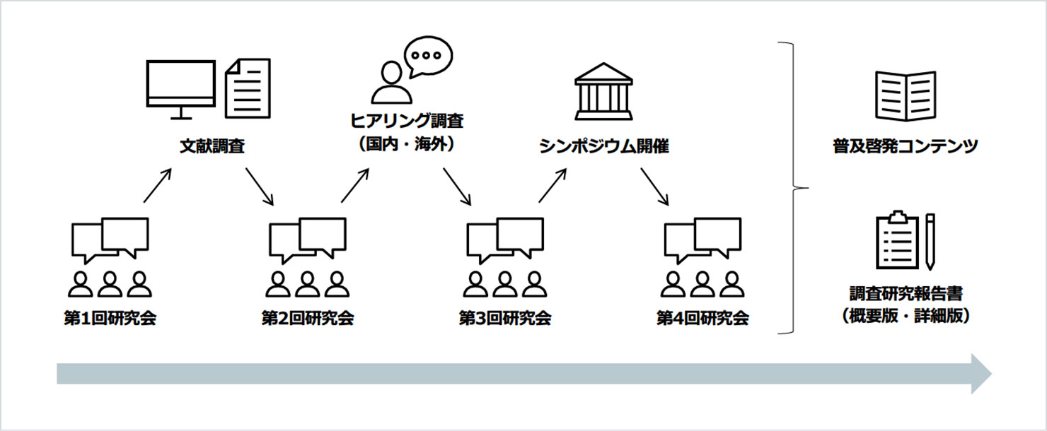 따라서 본 조사 연구에서는 특히 민간 영역에서의 서비스디자인 실천 현황에 초점을 맞추고 있습니다. 전문가를 위원으로 하는 '서비스디자인 연구회(연구회 의장: 게이오대학교 경제학부 교수 무케야마 마사나코(武山政直)씨)'의 논의와 검토를 중심으로 국내외의 실천 사례 조사 및 분석 등을 통해 일본에서의 서비스디자인의 효과적인 도입과 실천을 위한 제언을 하는 프로젝트로서 발족했습니다. 동시에 그 제언을 바탕으로 한 아웃풋으로 서비스디자인 보급 개발 콘텐츠를 제작하는 것도 본 프로젝트의 중요한 목적이 되고 있습니다.