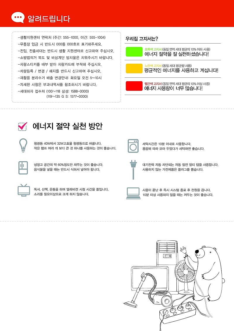 호감이 가는 캐릭터(북극곰)및 일러스트를 넣어, 고지서를 감성적으로 인지하도록 합니다.