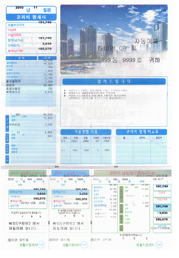 새로워진 고지서는 2011년 1월부터 3월까지 서울 방배동 래미안 아파트 600 가구를 대상으로 3개월간 배포되었습니다.