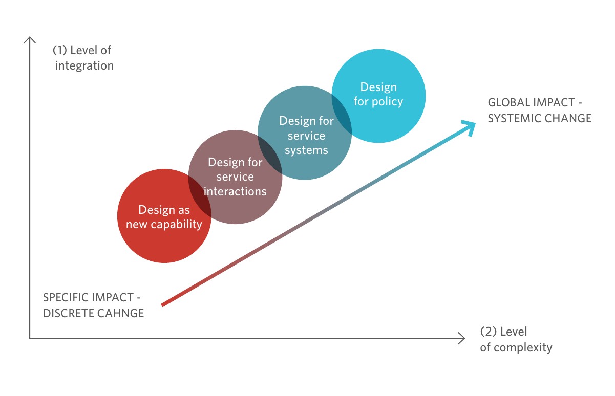 서비스디자인은 '정책 개발'에서 역할을 하고 있다. 시민을 위해 실제로 작동하는 정책을 설계하는 데 도움이 되는 시민의 필요와 제약에 대한 심층적인 통찰력을 제공할 뿐만 아니라 다양한 이해 관계자와의 공동 창작 프로세스를 가능하게 하고 촉진한다... (생략)'