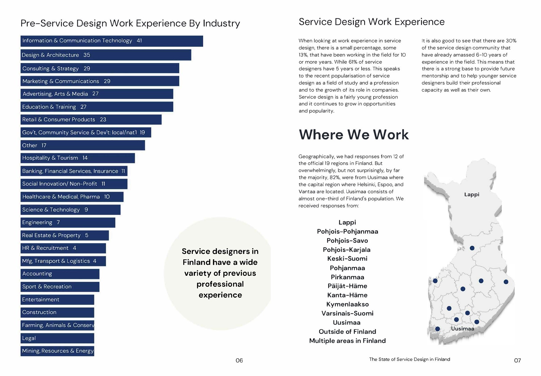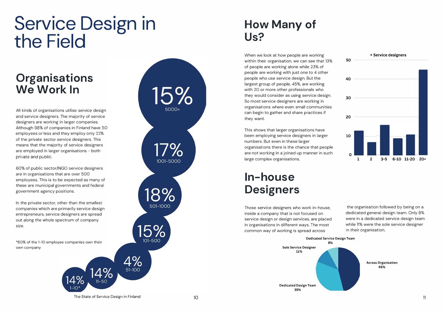 핀란드의 서비스디자이너는 누구일까? 그들은 어디에서 일하고 있나? 조직에서 서비스디자인은 어떻게 성숙해지고 있나? 핀란드에서는 서비스 디자인 교육이 어떻게 발전하고 있나?...등을 다룬다.