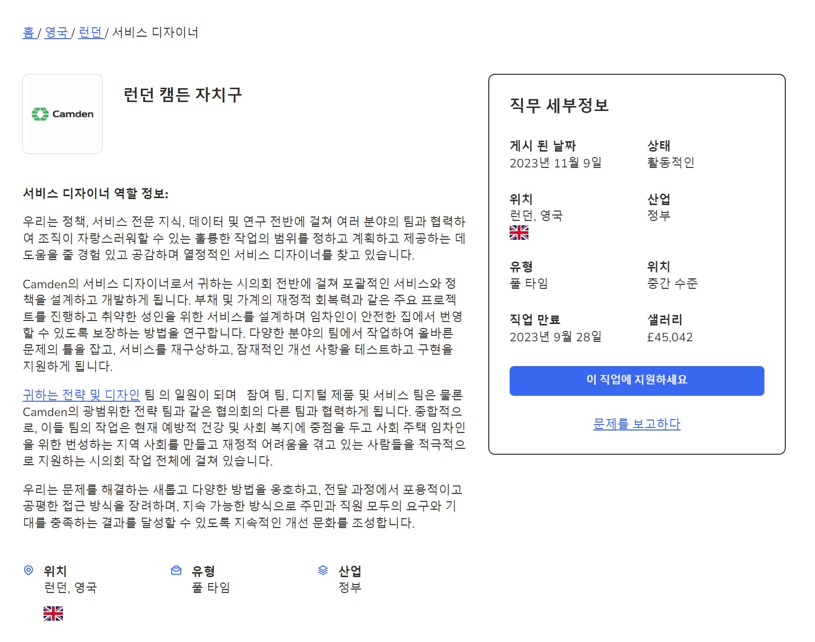 서비스 디자이너 해외 채용공고 열람 가능