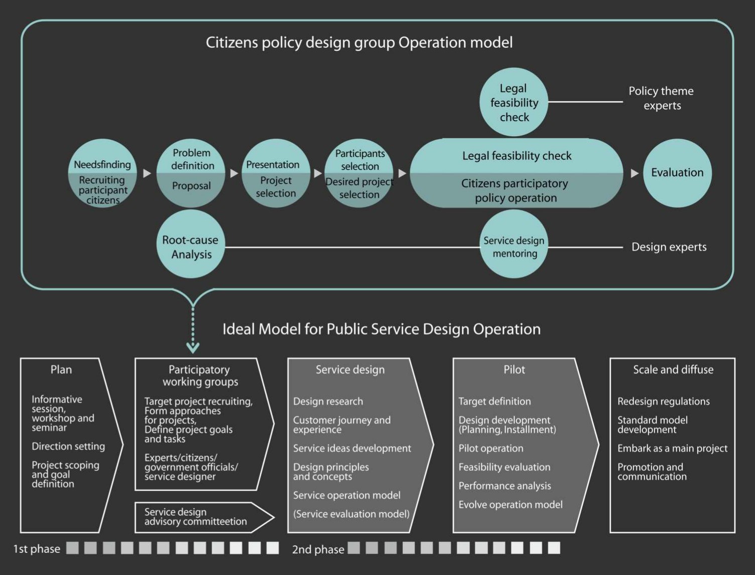 이 과제들을 대상으로 약 6주 간의 기간 동안 서비스디자인 방법을 통해 각 대상과제의 정책 계획을 재수립하기로 한다.