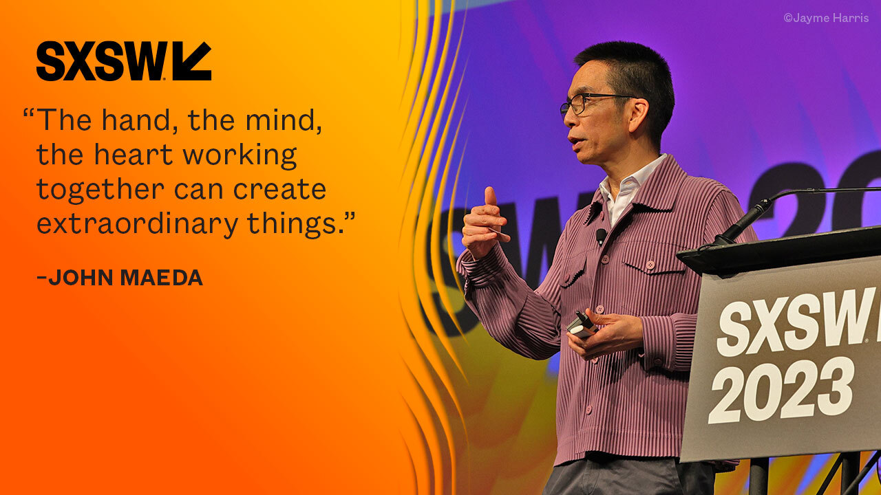 존 마에다(John Maeda)는 MIT 미디어 랩, RISD(Rhode Island School of Design), 그리고 최근에는 자동화 소프트웨어 회사인 Publicis Sapient의 글로벌 디자인 대표 등 다양한 역할을 수행했다. 그는 기술과 디자인이 어떻게 상호 작용하는지에 대한 깊은 이해를 가지고 있으며, 그의 연구와 접근 방식은 디자인 생각, 경험 디자인, 그리고 인터랙션 디자인 등 여러 분야에 큰 영향을 끼쳐왔다. 그는 매년 "Design in Tech Report"를 발표하며 디자인의 현재 상태와 미래에 대한 통찰을 제시한다.