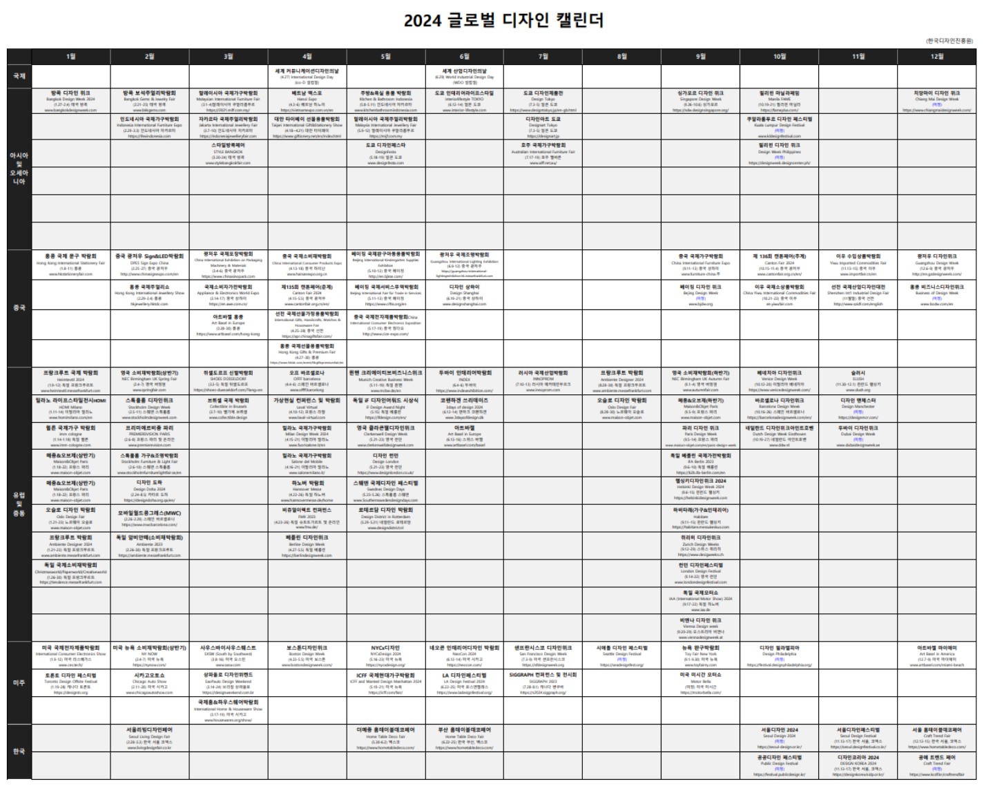 2024년 세계 각지의 디자인 행사 일정을 취합한 캘린더를 배포합니다.