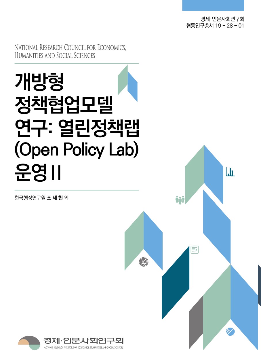 개방형 정책협업모델 연구: 열린정책랩(Open Policy Lab) 운영Ⅱ(2019)는 시스템 사고와 협력적 연구 거버넌스를 기반으로 한 정책의 비전 공동 설정과 공유를 중점으로 한다. 특히, 디지털 전환에 따른 혁신성장과 직업능력개발에 대응하기 위해 디지털 헬스케어와 스마트 제조혁신 분야에서 정책의제 발굴에 초점을 맞춘다. 이 연구는 정부 중심의 기획에서 벗어나, 현장 맥락에 맞는 수요지향정책 설계를 위한 정책랩의 활용을 탐색한다.