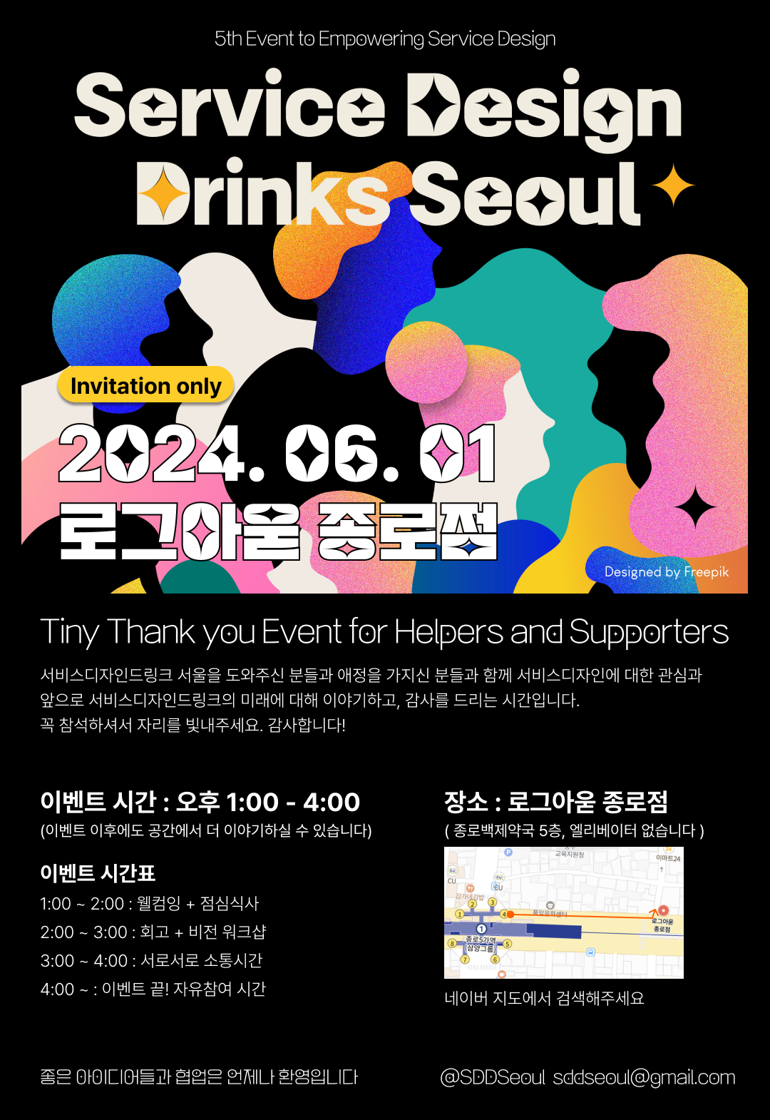 행사명 : 서비스디자인드링크 ( 일시 : 2024.6.1. 13:00~18:00, 장소 : 로그아욷 종로점)