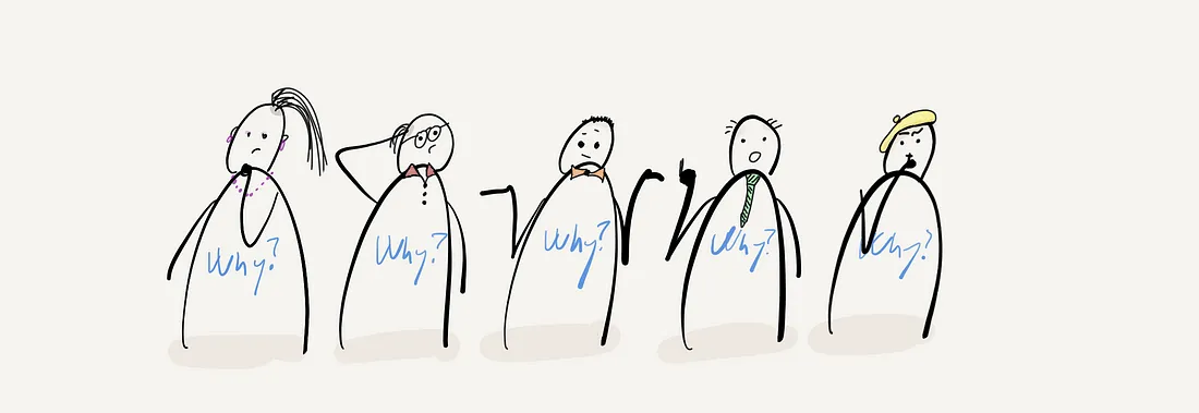 '5 Whys'는 Toyota에서 처음 도입한 기법으로, 전 세계 디자이너들이 활용하고 있습니다. 이 기법은 문제의 근본 원인을 파악하기 위한 연구 기법입니다. 많은 이들이 이에 대해 글을 쓰고 있지만, Forbes, IDEO, 또는 인터랙션 디자인 재단에서는 이 기법에 내재된 두 가지 중요한 결함에 대해 다루지 않습니다:
