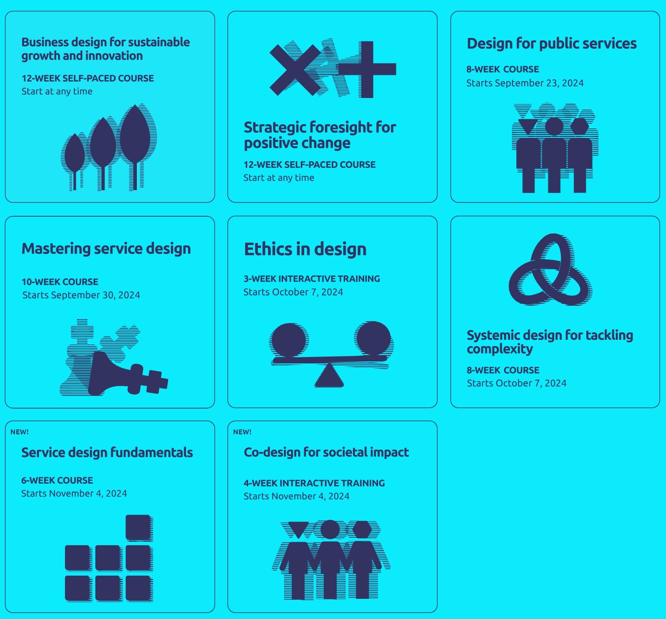 - 서비스디자인 기초: 서비스디자인의 기본 원리와 접근 방식을 소개하며, 디자인 사고와 사용자 중심의 문제 해결 방법론을 가르친다.
