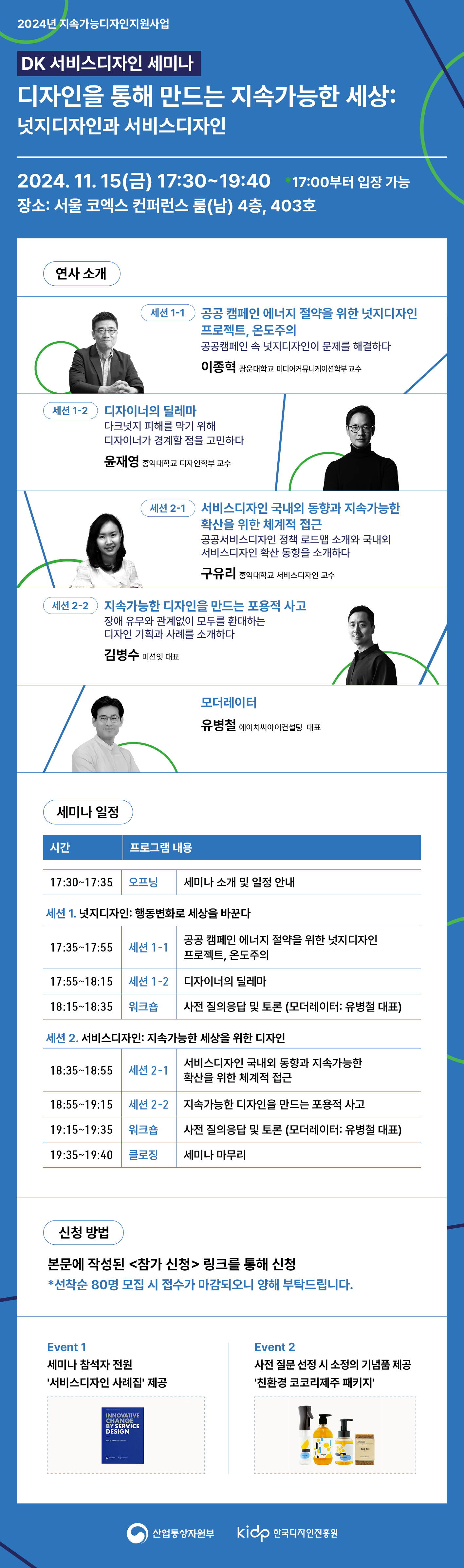 DK 서비스디자인 세미나는 디자인코리아 프로그램 한국디자인진흥원 지속가능디자인지원사업의 일환으로 진행됩니다.