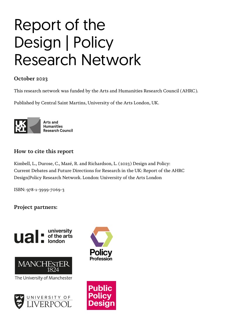 이 보고서는 영국 예술인문학연구위원회(AHRC, Arts and Humanities Research Council)가 지원한 Design | Policy 연구 네트워크의 연구 결과물로, 디자인과 정책이 어떻게 상호작용하며, 디자인이 정책 수립에 어떤 기여를 할 수 있는지를 분석한 연구이다.
