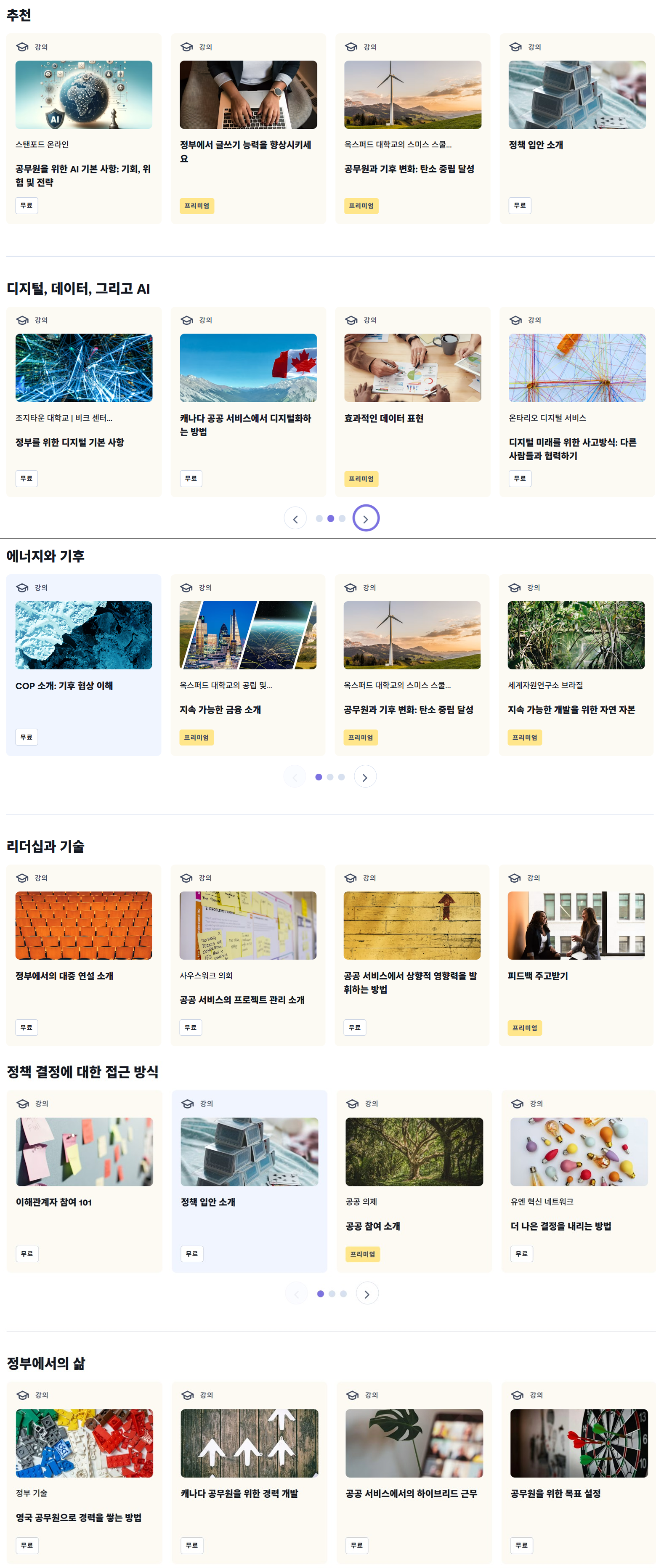 아래는 Apolitical이 제공하는 교육 프로그램들의 일부이다. 무료로 제공되는 것들도 꽤 있다.
