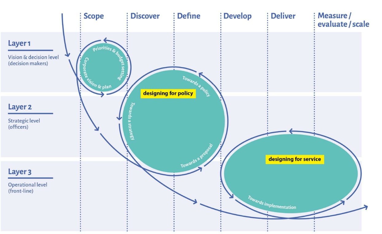 디자인 주도의 선제적 혁신은 ‘일상의 연속성’에 도전하는 유희적 대안들을 제시하며, 사람들이 대안적 미래를 구성하는 과정에서 어떤 역할을 할 수 있는지를 탐색하도록 상상력을 자극한다(Hilgren & Light, 2020). 이는 기존 정책 수립과정에 보완적 접근을 제공하거나, 심지어 그 과정을 전복할 수 있는 새로운 질서로 제안되기도 한다. 예를 들어, 정책 수립의 위계를 재정렬하여 “서비스와 시민의 경계면에서 얻어진 지식과 경험”을 중심축으로 삼고, 이것을 정책 수립의 핵심 동력으로 삼는 방식을 제안한다(Design Commission, 2013, p.6).