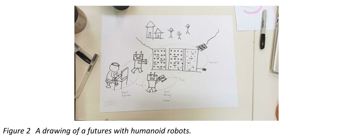 [그림 2] 휴머노이드 로봇이 등장하는 한 학생의 미래 비전 드로잉