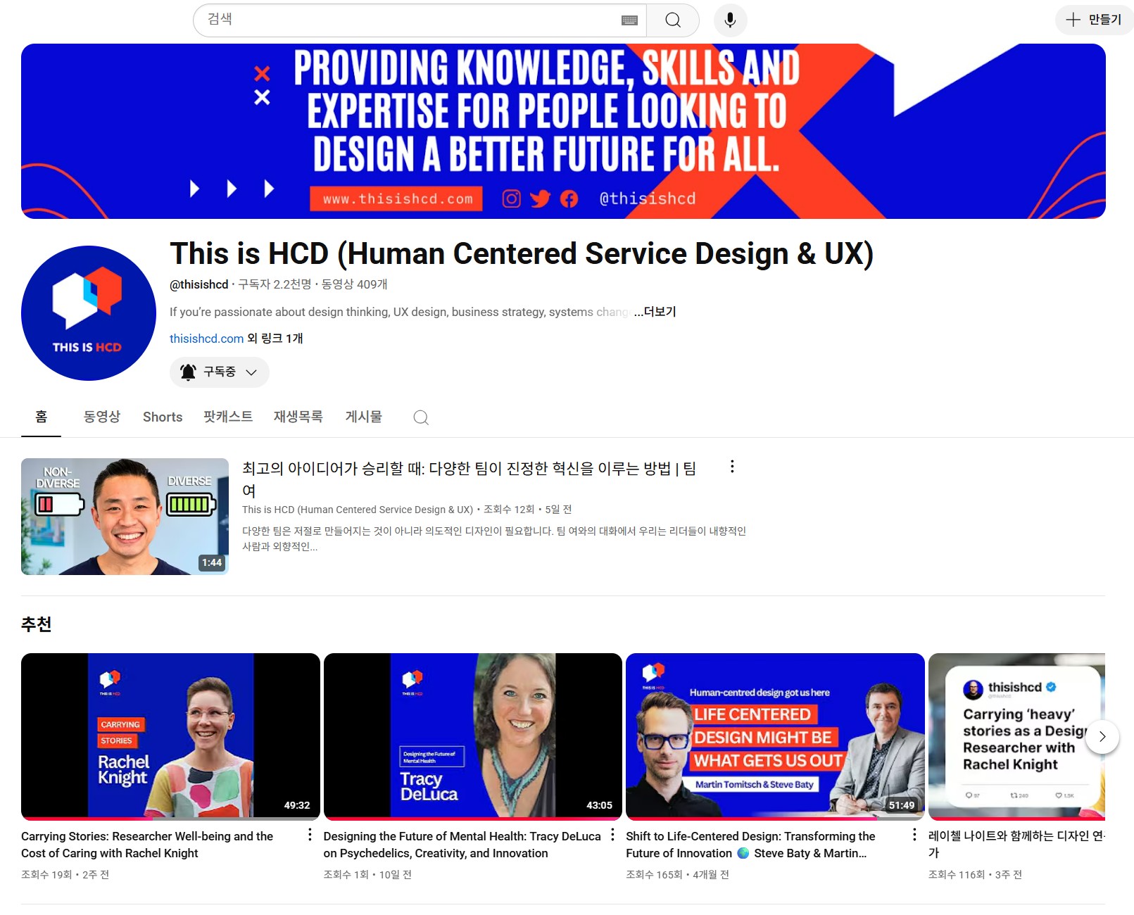 주목할 만한 채널을 소개합니다 - 이것이 인간 중심 서비스디자인/UX이다 (This is HCD: Human-Centered Service Design & UX)