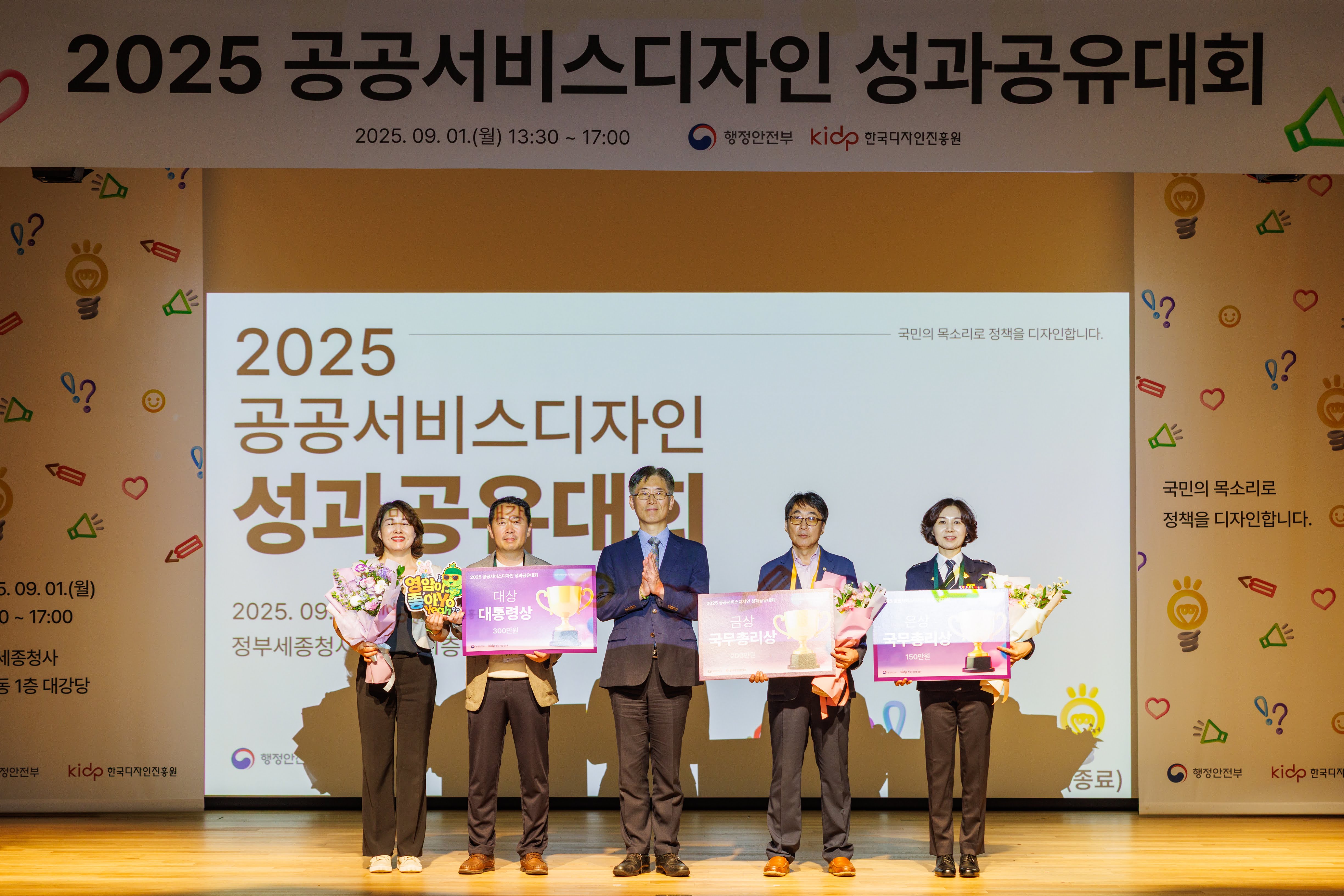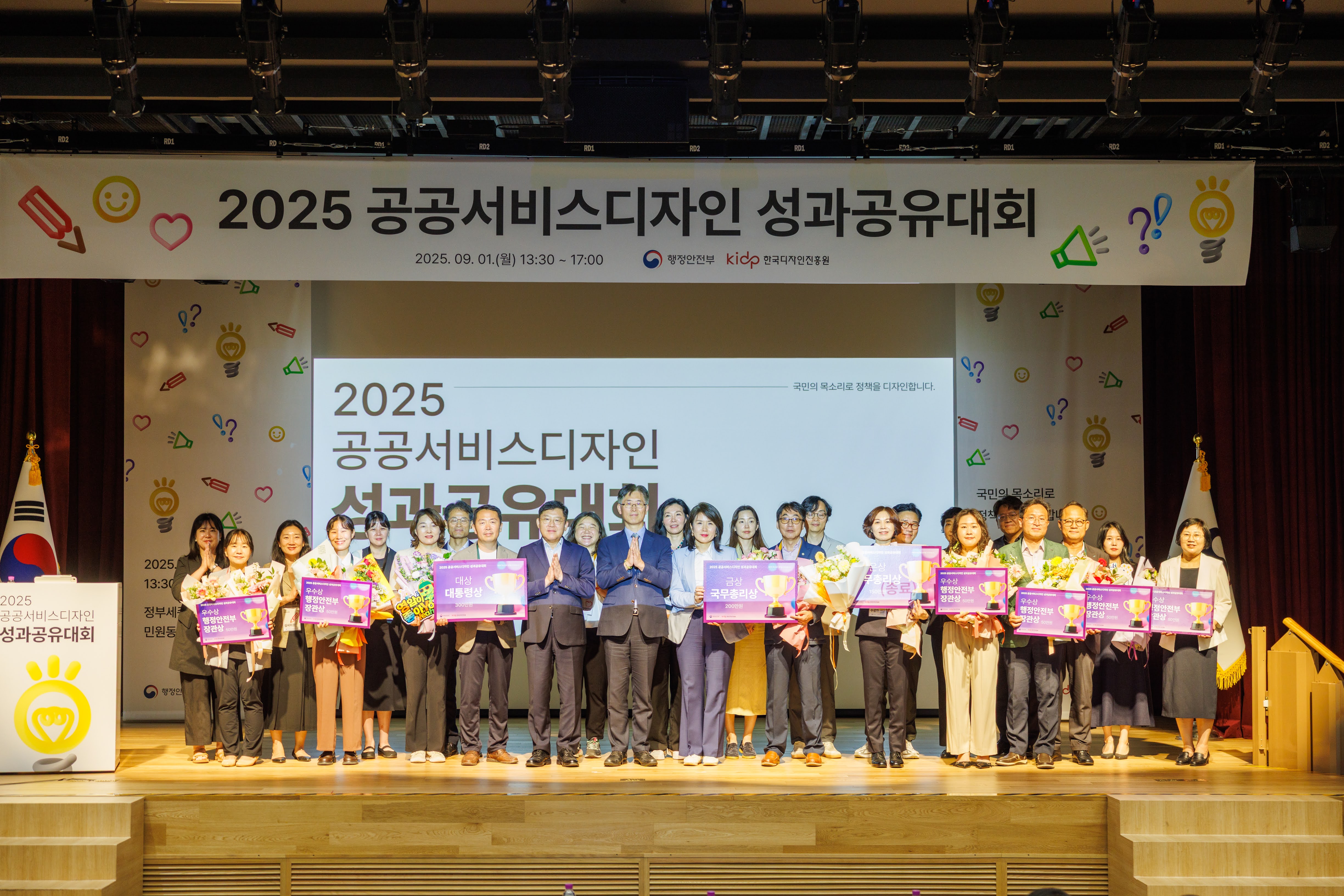 9월 1일, 12년의 역사를 이어온 공공서비스디자인 우수과제 성과공유대회가 막을 올렸다. 행정안전부와 한국디자인진흥원 유튜브 생중계로도 동시 진행된 이날 행사는 “국민과 함께하는 정책디자인의 힘”을 표제로, 각 부처·지자체·공공기관이 올 한 해 추진한 우수 과제를 발표하고 시상하는 자리였다. 개회 사회는 전해별 아나운서가 맡았고, 행정안전부 정부혁신국 황명석 국장과 한국디자인진흥원 윤상흠 원장이 환영사로 문을 열었다. 두 사람은 국민디자인단 12년, 2천여 과제와 2만여 명의 참여로 축적된 성과를 상기시키며 공공영역에서의 서비스디자인 확산 의지를 밝혔다.