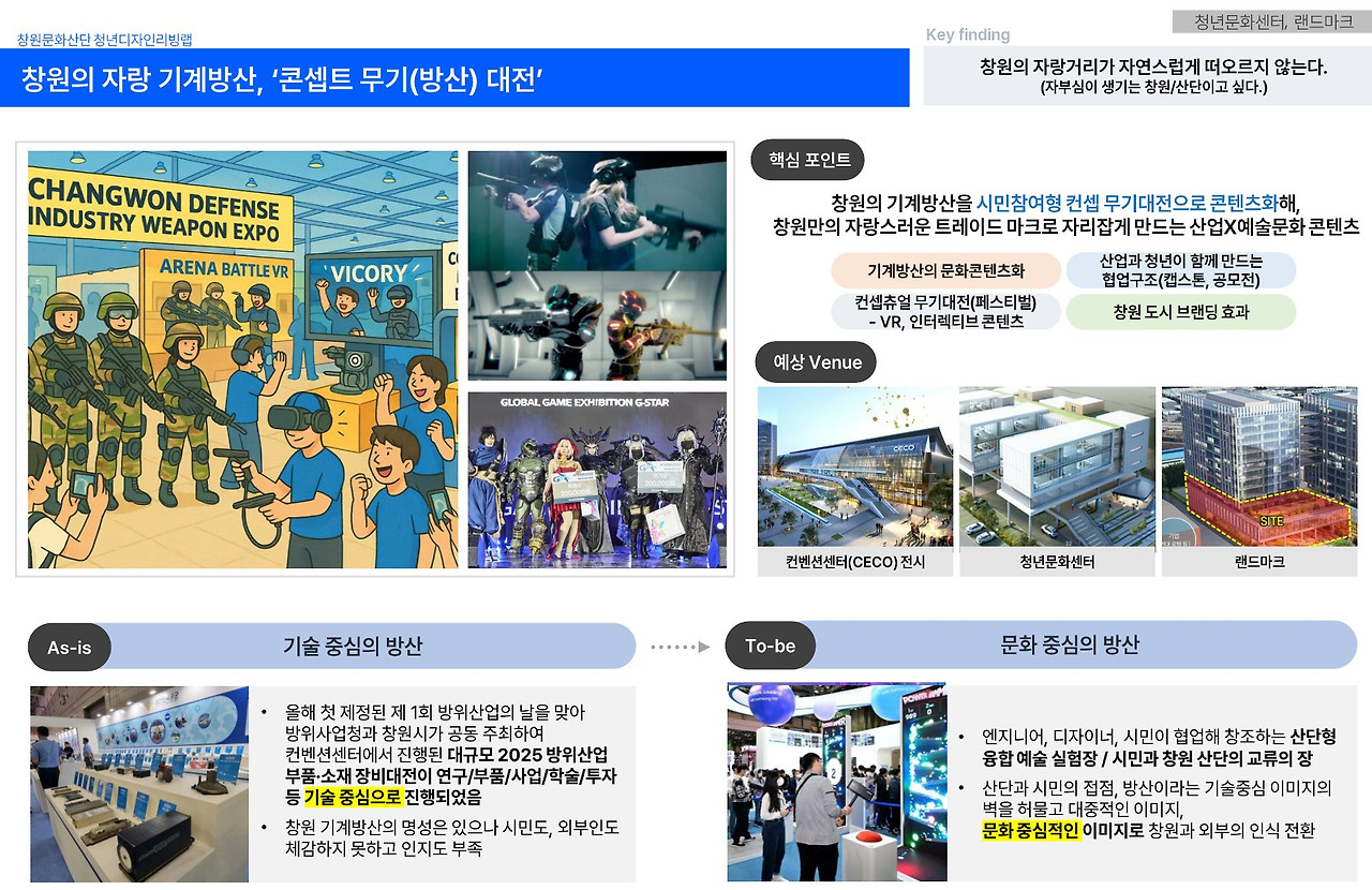 - 창원의 대표 산업인 기계방산을 시민 참여형 컨셉 무기대전으로 콘텐츠화