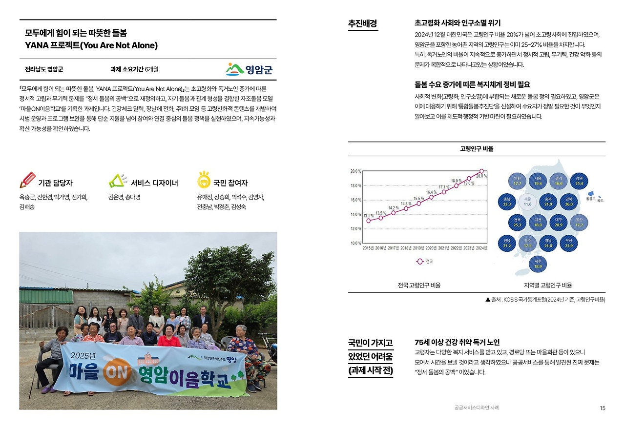 - 전라남도 영암군: 모두에게 힘이 되는 따뜻한 돌봄 YANA 프로젝트(You Are Not Alone)